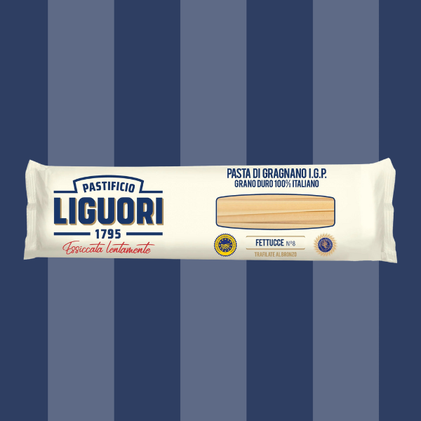 Pâtes de Gragnano IGP à base de semoule de blé dur 100% italienne. Tréfilage au bronze.