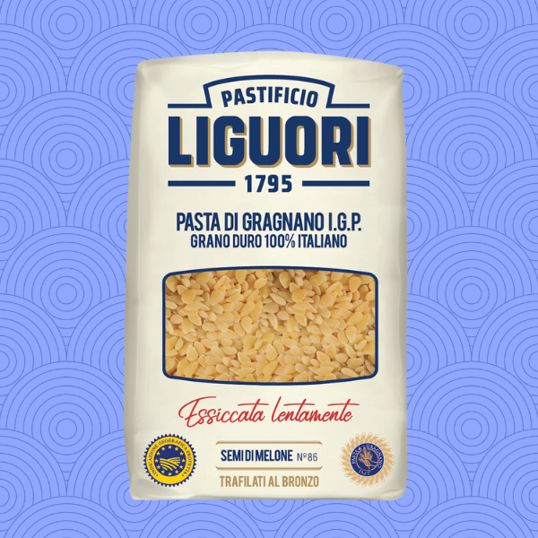 Pâtes de Gragnano IGP à base de semoule de blé dur 100% italienne.
